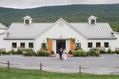 For the ceremony, Bloom provides wooden benches for your guests, and a first row of wooden cross back chairs for immediate family members. For the cocktail hour, guests are able to lounge in our Adirondack chairs or grab a seat at our cast iron high-top tables. Couples may also utilize our rustic outdoor bar during this time. For the reception, the Barn includes custom made farmhouse tables with white cross back chairs. Our rectangular tables seat up to 10 guests, and our square tables can seat up to 12 guests. The floor design is set the day before the event for you to see during rehearsal.